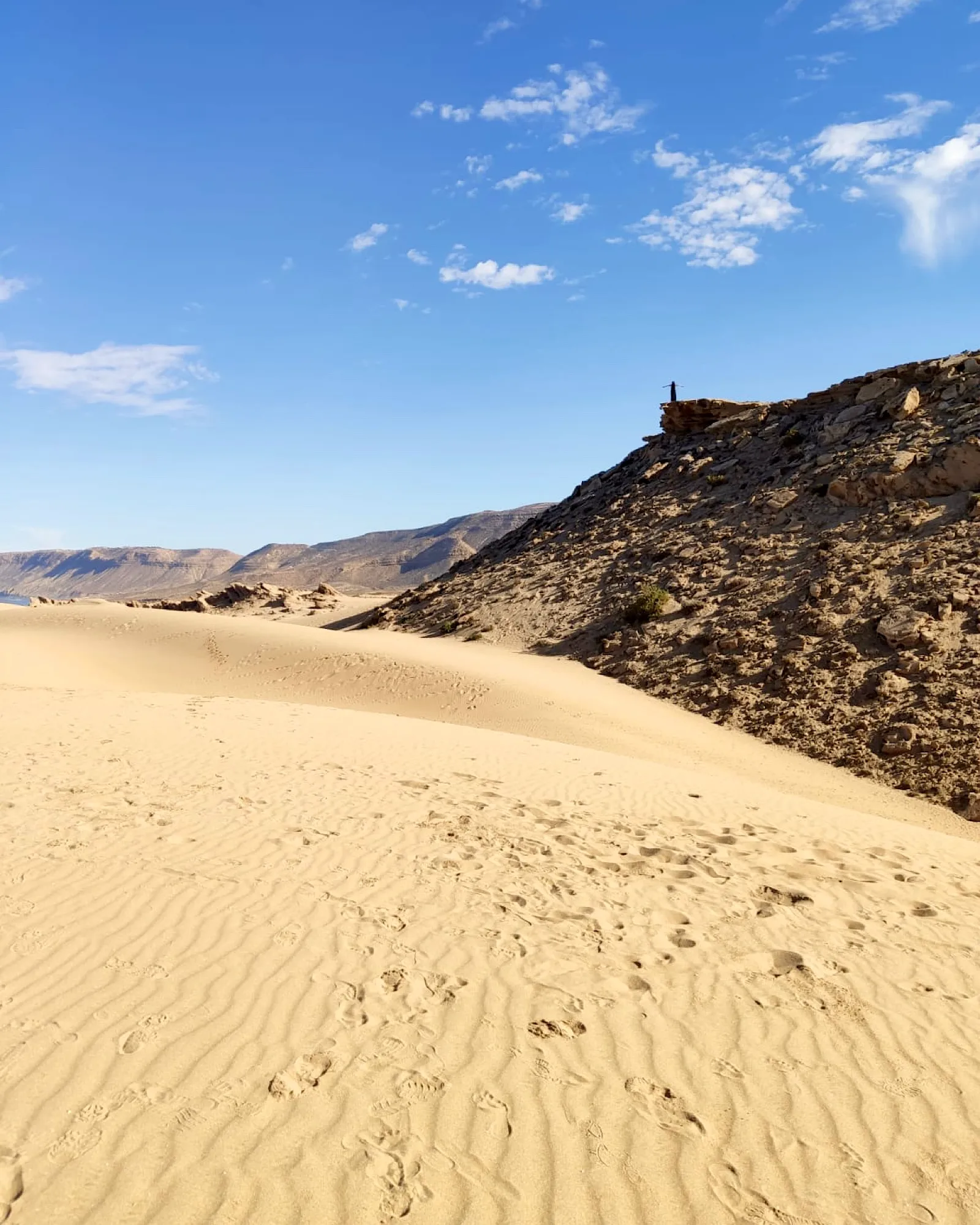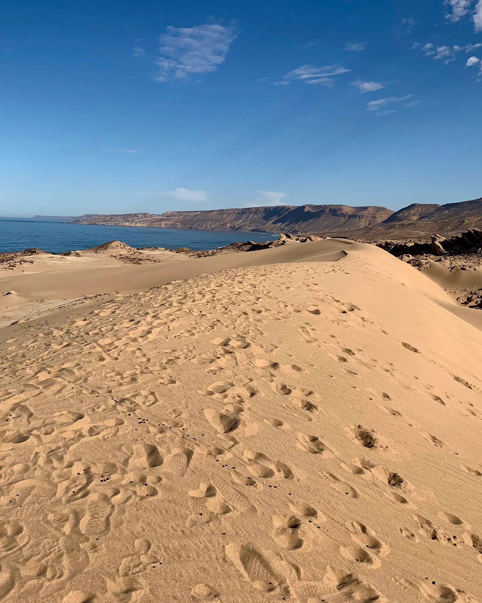 Neben der Moschee in Casablanca war das unser zweites großes Highlight der Reise. Wenn du oben auf dem Kamm einer Düne stehst, vor dir die Weite des Ozeans und hinter dir das schroffe Gebirge, fühlt es sich an wie das Ende der Welt – pure Freiheit.